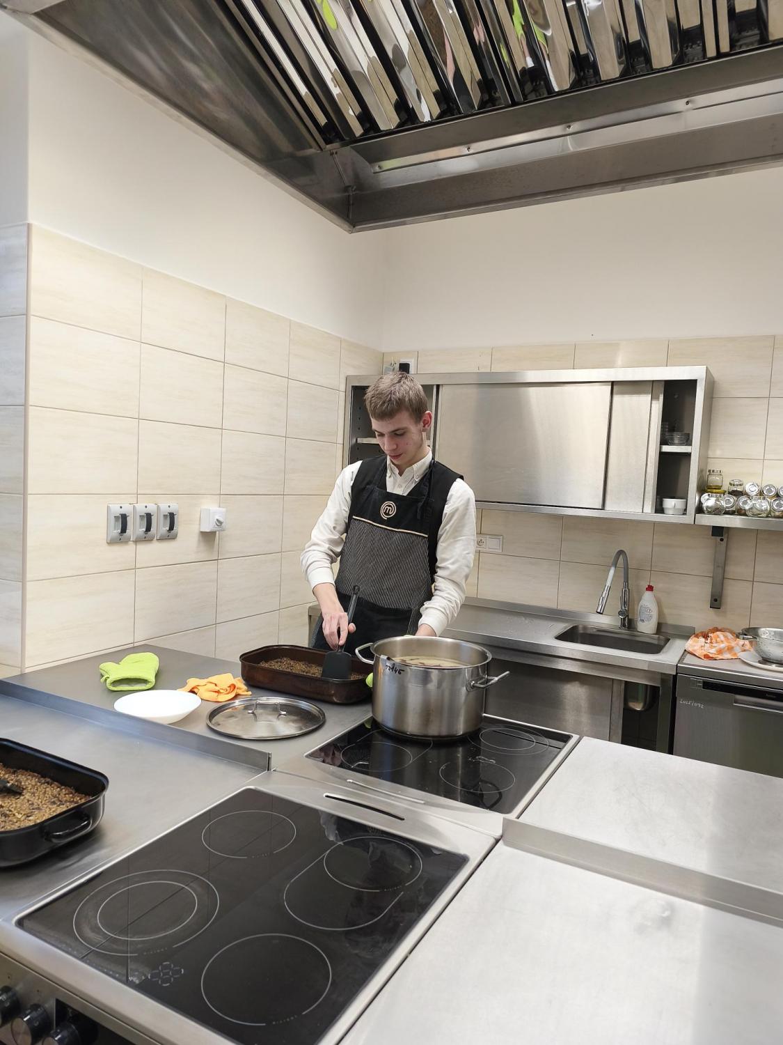 Vánoční tradice na Gymnáziu a Střední odborné škole v Rýmařově se letos nesly v ryze českém duchu. Nechybělo typicky české menu jako je zelňačka, houbový kuba, smažený kapr s bramborovým salátem a cukroví. Součástí bylo povídání o Vánocích a významu českých tradic. Některé z nich, jako lití olova, pouštění lodiček a házení střevícem si žáci vyzkoušeli. Poté zasedli ke slavnostní štědrovečerní tabuli a ochutnali vše, co si připravili. Celé dva dny se nesly v duchu sváteční atmosféry, která se nezadržitelně blíží. Studenti si odnášeli nové poznatky o tradičních českých Vánocích a plno nápadů pro přípravu vánočních svátků ve svých rodinách.